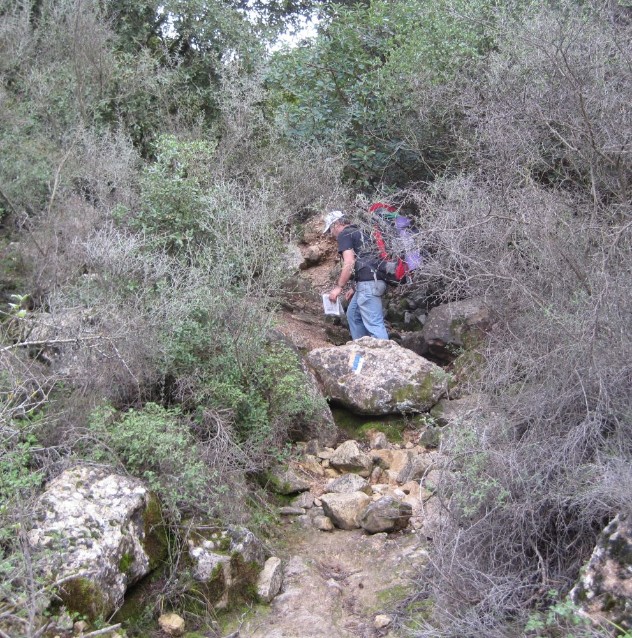 Up the steep path to Ein Kobi from Nachal Rafaim.