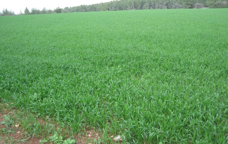 By 1:30 pm, about 2 hours from the mosaic we crossed Route 375 again and left Caesar’s road. We passed through a small forest and passed fields of winter wheat of such an emerald green that I couldn’t pull my eyes away. I took many pictures, but my digital camera couldn’t capture the true color. Israel has a Mediterranean climate and gets all of its rain in the winter. Most crops, therefore, rely on irrigation, but winter wheat is sown in the fall and depends completely on the winter rains to grow.