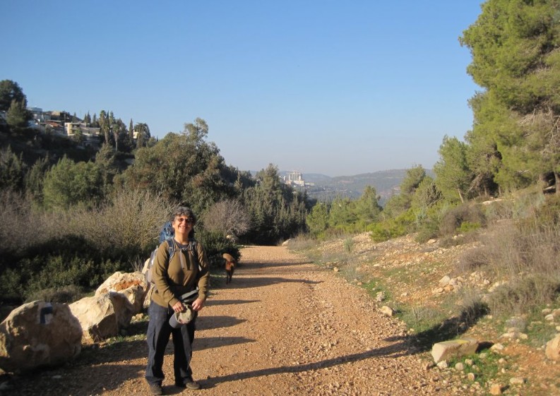 We did buy ourselves some fresh fruit to enjoy later. In a few minutes we were past Ein Kerem and walking on the Hadassah Hiking Path. Hadassah is a huge medical complex, more like a city than a hospital, and they have undertaken to maintain a loop trail around the area, so the path was well maintained with frequent picnic tables. It was also unusually wide and sometimes seemed to be paved. It turns out we were on an ancient Roman road where once the Roman legions marched to subdue Jerusalem. We found ourselves on different parts of this road several times over the three days of our hike.