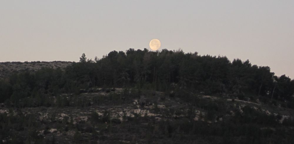 The scene was of astounding beauty. The full moon was on its way down towards the west where Tel Azeka was waiting for us, while in the east you could see the very first inkling of predawn light. There are few things in this world that I love more than being on the trail before dawn and watching the dawn break as you walk.